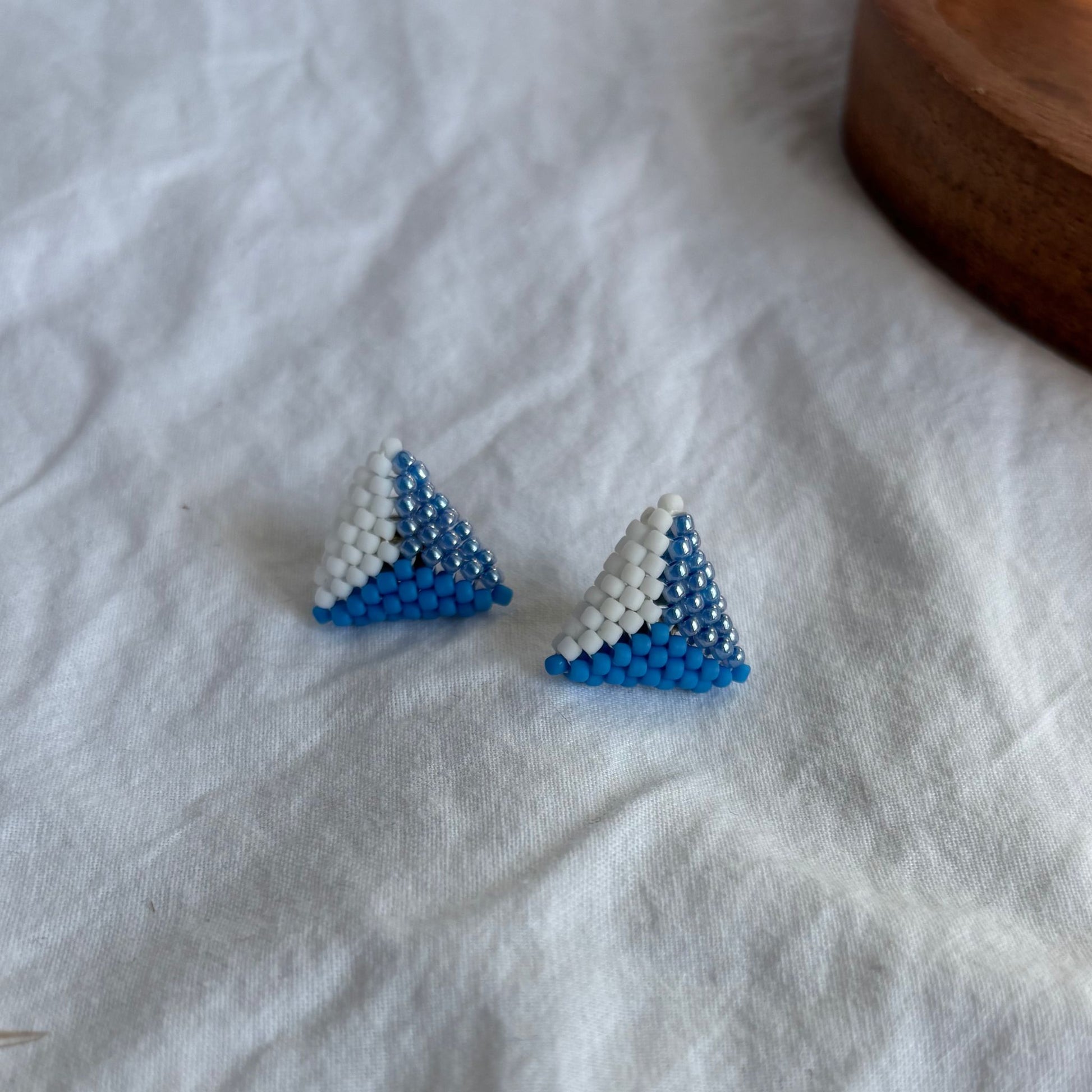 Mici, grafici și foarte comozi. „Ivelle Azur” sunt cercei tip stud în formă de triunghi 3D, țesuți manual din mărgele de sticlă în alb, albastru și argintiu. Volumul discret și paleta fresh îi fac perfecți pentru purtare zilnică sau pentru mix & match cu alte piercing-uri.